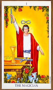 There are four Tarot cards that have the infinity sign, also known as the lemniscate. I’ve already written about the Two of Pentacles. On this card the man with a tall hat is balancing two opposing pentacles, ideas or demands. In this case, he doesn’t have to choose. The lemniscate is helping him balance the seemingly unbalanceable. He is able to juggle these two directions by holding them lightly and allowing the flow of life to keep it all going. He demonstrates that, with a little skill, you can balance the yin and yang of life.