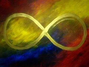 The lemniscate makes a fourth and final appearance in the grand finale of the journey. The World, card 21, has red ribbons on top and bottom of the laurel wreath surrounding the dancer of life. These red ribbons are lemniscates meaning that the connection to infinite wisdom is part of the whole being. The dancer is victorious after the long journey and is no longer separate from the eternal state represented by infinity. This is the state of oneness, always in the moment, beyond time.